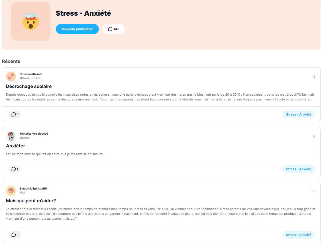 Launched in September 2022 and March 2023, the Tj Forum publicity campaign focused on the three most common concerns of teens who reach out to Tel-jeunes: sexuality, love, and anxiety.